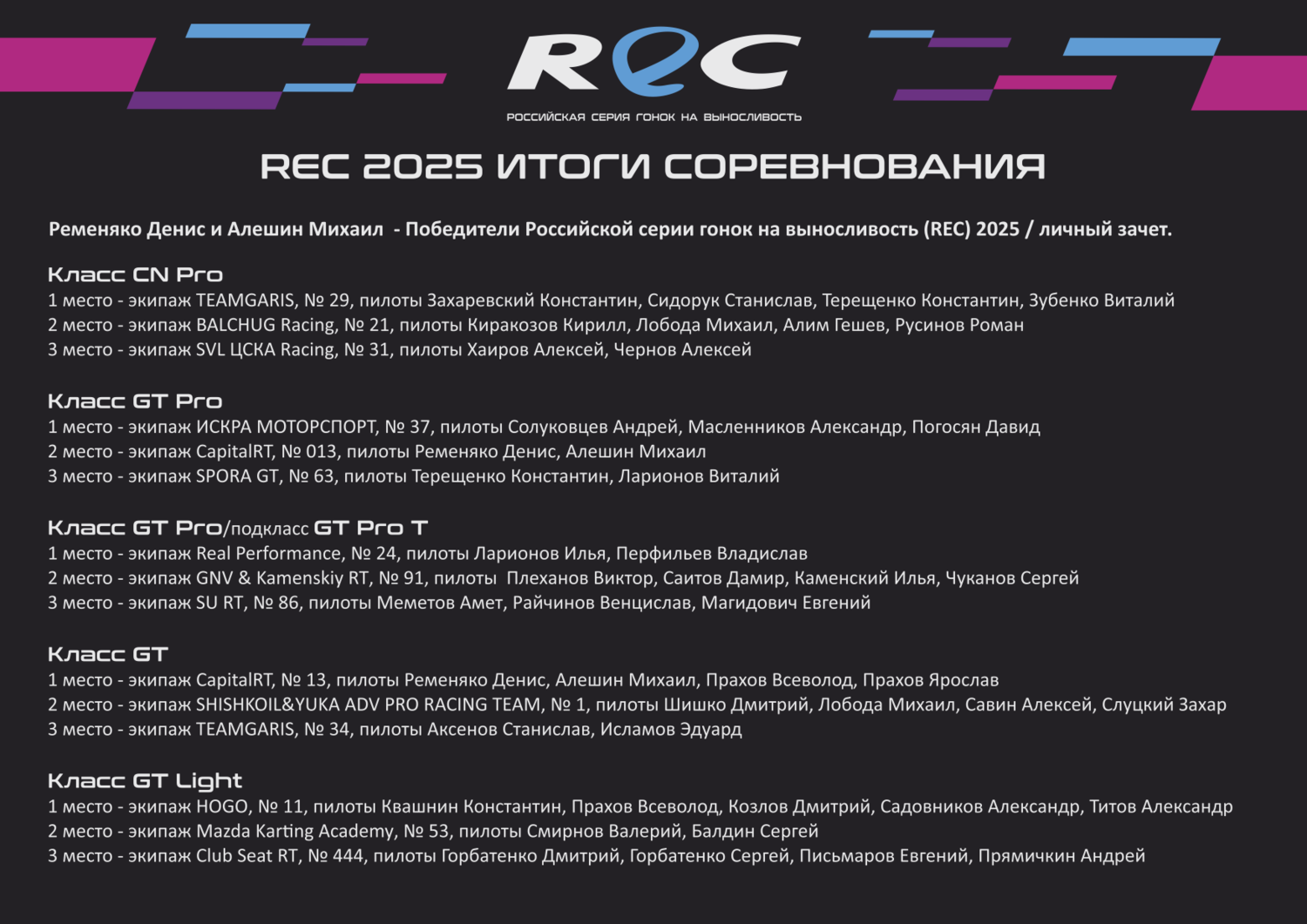 Итоги REC 4ч ИГОРА ДРАЙВ Российской серии гонок на выносливость